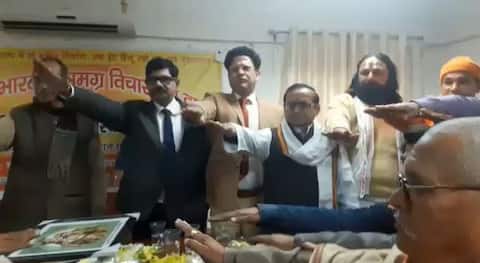 गुरुवार को लखनऊ यूनिवर्सिटी में आयोजित एक कार्यक्रम में सूर्य कुमार शुक्ला ने हिंदू संगठन के लोगों के साथ मिल कर राम मंदिर बनाने की शपथ ली.