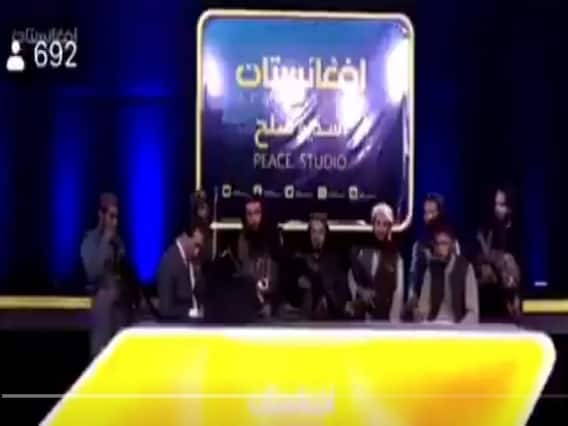 हथियारों से लैस सात तालिबानी आतंकी स्टूडियो में इंटरव्यू ले रहे एंकर को घेर कर खड़े हैं. आतंकियों ने सवाल पूछने वाले एंकर को इस कदर घेर लिया कि मानो कह रहे हैं कि एक भी टेढ़ा सवाल पूछा तो गोली मार देंगे.