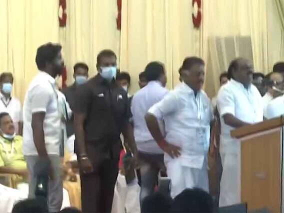 Power struggle in AIADMK: अन्नाद्रमुक (AIADMK) के समन्वयक और पूर्व डिप्टी सीएम ओ पन्नीरसेल्वम (O Panneerselvam) पर आज पार्टी की आम परिषद की बैठक (General Council Meeting) में बोतलें (Bottles) फेंकी गईं. बैठक चेन्नई (Chennai) के वनगरम (Vanagaram) के श्रीवारु वेंकटचलपति पैलेस (Shrivaaru Venkatachalapathy Palace) में हुई थी. पन्नीरसेल्वम बैठक में उनके प्रतिद्वंद्वी व संयुक्त संयोजक ई.के. पलानीस्वामी का पक्ष लिए जाने के बाद बैठक छोड़कर चले गए.