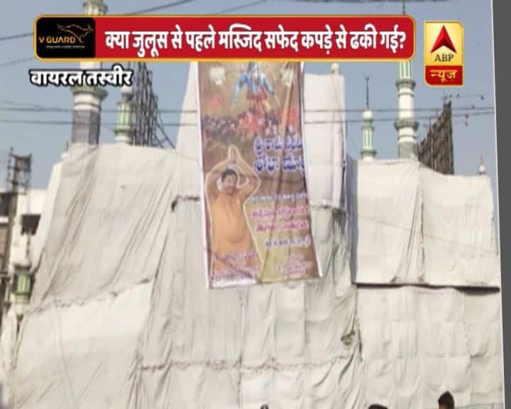 नई दिल्लीः सोशल मीडिया पर हर रोज कई फोटो, वीडियो और मैसेज वायरल होते हैं. वायरल हो रहे इन फोटो, वीडियो और मैसेज के जरिए कई चौंकाने वाले दावे भी किए जाते हैं. ऐसा ही एक दावा सोशल मीडिया पर सनसनी बढ़ा रहा है. एक तस्वीर वायरल हो रही है जिसमें दावा है कि रामनवमी के जुलूस में मस्जिद को ना सिर्फ सफेद कपड़े से ढक दिया गया बल्कि मस्जिद पर श्रीराम का पोस्टर भी लगाया गया.