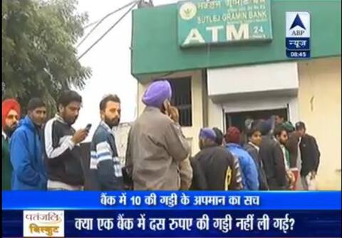 नई दिल्लीः नोटबंदी के बाद से बैंक मे 500 और 1000 का नोट जमा करने के लिए मार मची है. ऐसे में कोई 10 के नोटों की गड्डी जमा करने पहुंचे तो लोग हैरान होंगे ही लेकिन यहां कहानी कुछ और है. वायरल वीडियो के जरिए दावा किया जा रहा है एक सज्जन 10 की कई गड्डियां जमा कराने पहुंचे लेकिन बैंक ने लेने से मना कर दिया. क्या है एक बैंक में 10 की गड्डी के अपमान का वायरल सच देखें.