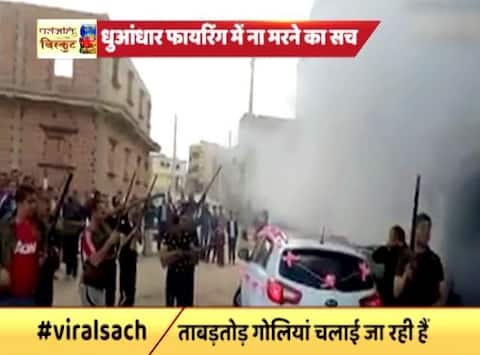 वीडियो में दिखाया गया है कि शादी के मौकों पर दिखने वाली बिल्कुल सजी धजी एक गाड़ी दरवाजे पर खड़ी है और धड़ाधड़ गोलियां चलाई जा रही हैं. एक आदमी दो-दो बंदूके लेकर ऐसे गोलियां चला रहा है, मानों जमीन को छेद डालना चाहता हो. थोड़ी देर में दरवाजे के आगे से गाड़ी तो चली जाती है. लेकिन, बंदूकों के साथ गोलियां बरसाने का खेल शुरू हो जाता है.