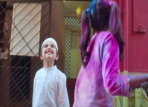 लड़की छत से बरसाए जा रहे रंगों से कैसे उसे बचाती है. फिर नमाज के लिए सीढ़ियों तक पहुंचाती है. और जैसे ही लड़का कहता है कि नमाज पढ़कर आता हूं तो लड़की जवाब देती है, ''बाद में रंग पड़ेगा.'' तभी लड़का सहमती से सिर हिलाता है और मुस्कुरा कर नमाज के लिए चल देता है.