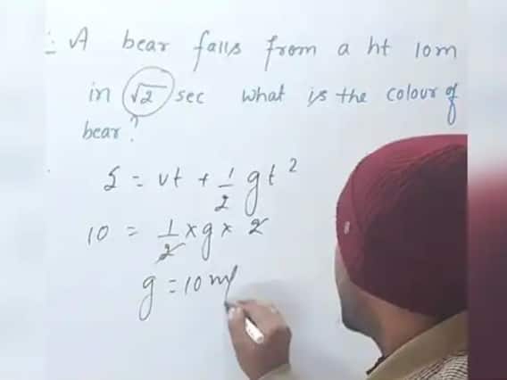 वीडियो को शेयर करने वाले यूजर ने लिखा, "मुझे लगा वह मजाक कर रहा है लेकिन आदमी ने सचमुच इसे हल कर दिया." दरअसल, वायरल वीडियो में निखिल आनंद के सामने गणित का सवाल था- 'एक भालू √2 सेकंड में 10 मीटर की ऊंचाई से गिरता है. भालू का रंग क्या है?' आपको भी इस प्रश्न को हल करना मुश्किल लग रहा होगा, लेकिन टीचर ने इसे कुछ ही सेकेंड में सॉल्व कर दिया.