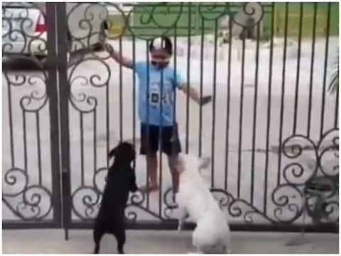 दरअसल इस वीडियो में एक बच्चा और दो कुत्ते की शानदार जुगलबंदी चल रही है. वीडियो में आप देखेंगे कि बच्चा मेन गेट के बाहर है और दरवाजे के पीछे दो छोटे-छोटे कुत्ते के बच्चे. जैसे ही वो भौंकना शुरू करते हैं वैसे भी बच्चा उनके सामने भांगड़ा करने लग जाता है. सोशल मीडिया पर यह वीडियो लोगों को खूब पसंद आ रहा है.