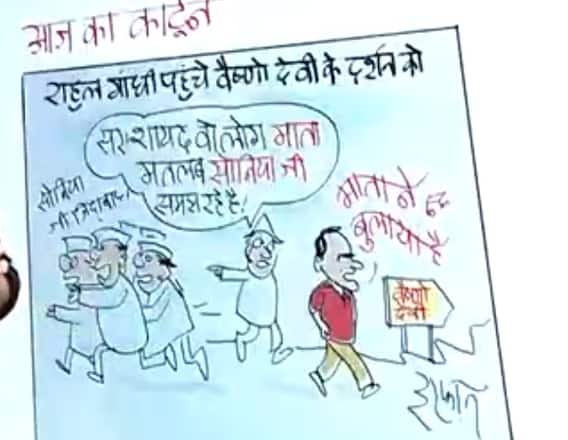 दरअसल अपने कार्टून में इरफान ने दिखाया है कि राहुल गांधी वैष्णो देवी के मंदिर की ओर जाने वाले रास्ते की ओर बढ़ रहे हैं और कह रहे हैं ‘माता ने बुलाया है.’ राहुल के पीछे कुछ नेता उलटी दिशा में जाते हुए दिख रहे हैं. इस दौरान एक नेता राहुल से कहते हैं, ‘’सर शायद वो लोग माता मतलब सोनिया जी समझ रहे हैं.’’