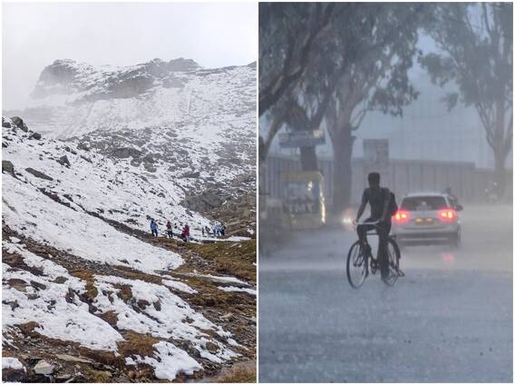 Latest Weather Updates: देश में पिछले तीन चार दिनों से मौसम का मिजाज बिगड़ा हुआ है. जहां एक तरफ जम्मू-कश्मीर, हिमाचल प्रदेश और उत्तराखंड के कई इलाके में बर्फबारी जारी है तो वहीं पंजाब, हरियाणा और दिल्ली-एनसीआर समेत पूरे उत्तर भारत में लगातार बारिश हो रही है. पहाड़ों पर बर्फबारी और बारिश ने ठिठुरन बढ़ा दी है.
