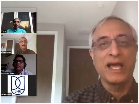 कोरोना के महासंकट काल में जेएनयू में भगवद गीता पर वेबिनार आयोजित किया गया. इसका शीर्षक ' कोविड-19 क्राइसिस के दौरान भगवद गीता से सीख' था.