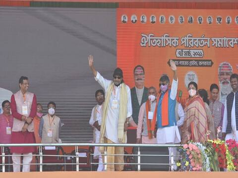 प्रधानमंत्री मोदी करीब दो बजे संबोधन करेंगे. उनके पहुंचने के डेढ़ घंटे पहले ही मिथुन चक्रवर्ती बीजेपी के चुनावी मंच पर पहुंच गए. बताया जा रहा है कि प्रधानमंत्री मोदी की मौजूदगी में मिथुन चक्रवर्ती बंगाल की जनता को संबोधित कर सकते हैं. अभिनेता मिथुन चक्रवर्ती ने बीते 16 फरवरी को मुंबई में राष्ट्रीय स्वयंसेवक संघ के सरसंघचालक मोहन भागवत से भेंट की थी. जिसके बाद उनके बीजेपी में जाने की अटकलें लगने लगीं थीं.