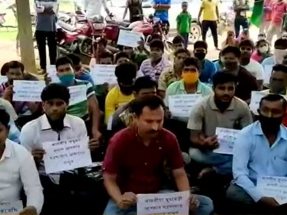 कोलकाता: पश्चिम बंगाल से दिलचस्प सियासी तस्वीर सामने आई है. टीएमसी दफ्तर के बाहर बीजेपी कार्यकर्ता धरना देकर बैठ गए. इनकी मांग है कि हमें वापस टीएमसी में लिया जाए. पश्चिम बंगाल के बीरभूम में सोमवार को यह अजीब दृश्य देखने को मिला जहां लगभग 50 बीजेपी कार्यकर्ता टीएमसी दफ्तर के बाहर धरना देकर बैठ गए.