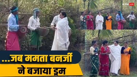 समाचार एजेंसी एएनआई ने सोशल मीडिया प्लेटफॉर्म एक्स पर ममता बनर्जी के इस डांस से जुड़ा वीडियो शेयर किया. एक मिनट एक सेकेंड की इस क्लिप में पश्चिम बंगाल की सीएम सफेद रंग की साड़ी में आदिवासियों के बीच नजर आईं. वह इस दौरान ढोलक की थाप पर आदिवासी औरतों के साथ उनका पारंपरिक लोक नृत्य करती दिखीं. डांस के बाद टीएमसी सुप्रीमो ने दो महिलाओं के कंधे पर हाथ रखा और मुस्कुराते हुए उन सबसे यह पूछने लगीं कि क्या उन लोगों ने खाना खाया है?