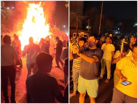 नोएडा में होलिका दहन के मौके पर लोग कोरोना से लापरवाह