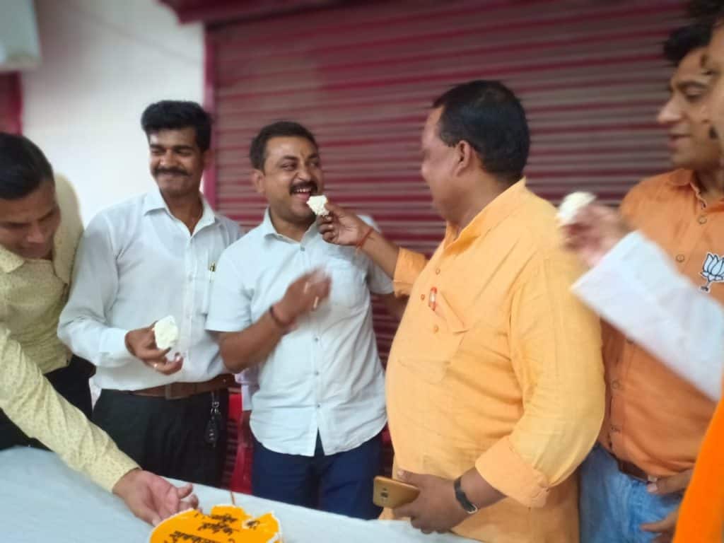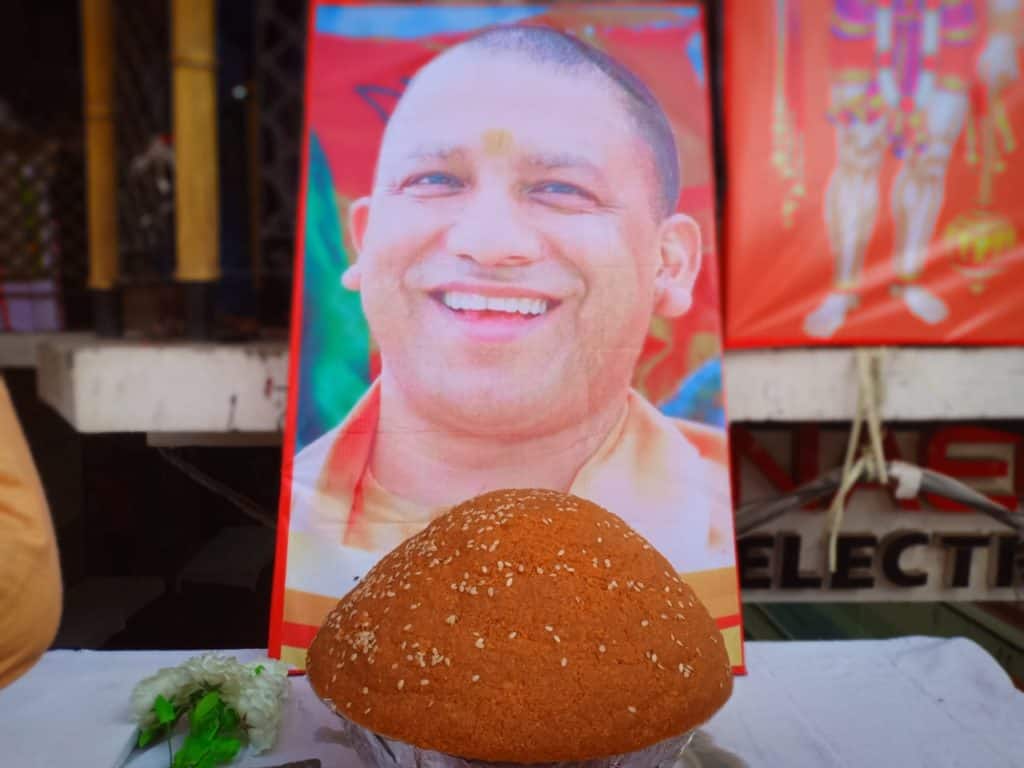 भगवा रंग के गुब्बारों से सजाया गया रेती चौक इसके बाद व्यापारियों ने केक काटकर एक-दूसरे को खिलाया. वहीं व्यापारियों ने इस अवसर पर पूरे चौराहे को भगवा रंग के गुब्बारों से सजाया गया. इस कार्यक्रम में भगवा केक भी काटा गया. इस दौरान गरीबों के साथ आम नागरिकों के लिए शर्बत और लंगर की व्यवस्था भी की गई थी. इस कार्यक्रम में बीजेपी के कई बड़े पदाधिकारी और व्यापारी शामिल हुए. ढोल नगाड़ों के बीच योगी समर्थकों ने उनकी तस्वीर को तिलक लगाया और 46 किलो के लड्डू को जनता के बीच में बांटा गया.