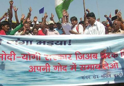 इलाहाबाद: इलाहाबाद में कुछ महीनों बाद लगने जा रहे कुंभ मेले के लिए संगम और उसके आस-पास के इलाकों में झुग्गी झोपड़ियों में रहने वाले लोगों को हटाया जा रहा है. इससे सैकड़ों परिवारों के बेघर होने का खतरा मंडराने लगा है. पीड़ित झुग्गी झोपड़ी वालों ने आज इस मामले को लेकर संगम पर प्रदर्शन किया और केंद्र की मोदी और यूपी की योगी सरकार के खिलाफ जमकर नारेबाजी की. गंगा नदी के तट पर हुए इस प्रदर्शन के दौरान योगी सरकार पर तानाशाही रवैये का आरोप लगाते हुए अपनी जगह किसी कीमत पर नहीं छोड़ने का एलान किया गया.