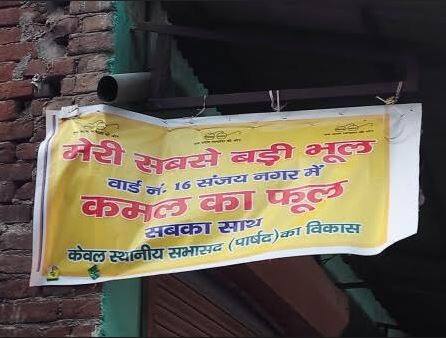 दरअसल वार्ड 16 के लोगों ने यह बैनर लगा दिया है. क्योंकि बिना बरसात के यहां पानी भरा हुआ है. लोगों को सड़क से निकलने में दिक्कत हो रही है, संक्रामक बीमारियां फैल रही हैं और बदबू के कारण सांस लेना भी मुश्किल हो गया है.