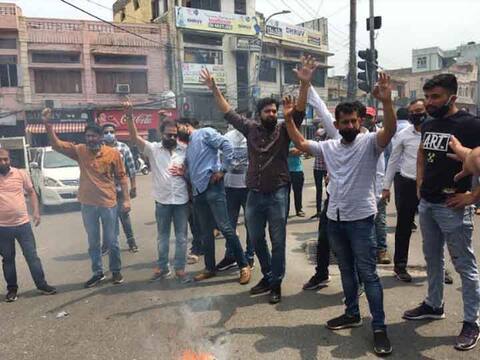 सरपंच अजय कुमार पंडिता की हत्या के विरोध में भारतीय जनता युवा मोर्चा का जम्मू में प्रदर्शन, इमरान खान का पुतला फूंका
