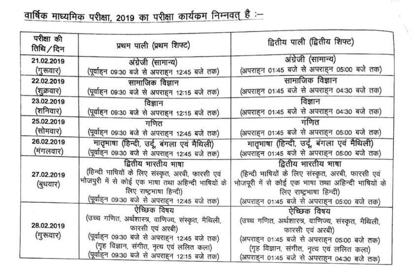 नई दिल्ली: BSEB की मैट्रिक की परीक्षाओं की तारीख का एलान किया जा चुका है. बिहार बोर्ड के 10वीं की परीक्षा 21 फरवरी से शुरू होकर 28 फरवरी तक चलेगी. परीक्षा दो पाली (शिफ्ट) में ली जाएंगी. पहली शिफ्ट की परीक्षा सुबह 9:30 बजे से दोपहर 12:45 बजे तक होगी जबकि दूसरी शिफ्ट में दोपहर 1:45 बजे से लेकर शाम 5 बजे तक परीक्षाएं होंगी. छात्रों को 15 मिनट का अतिरिक्त समय दिया जाएगा ताकि वो प्रश्नपत्र को अच्छे से पढ़ और समझ सकें.