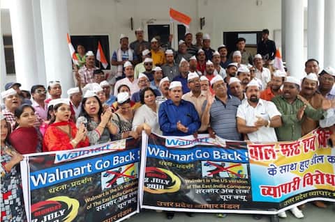 सोमवार को संगम के शहर इलाहाबाद के कारोबारियों ने इसके विरोध में अपनी दुकानें कुछ देर के लिए सांकेतिक तौर पर बंद रखीं और सड़कों पर प्रदर्शन कर नाराज़गी जताई. कारोबारियों ने इस मौके पर केंद्र की मोदी सरकार के खिलाफ जमकर नारेबाजी की और अमेरिकी कंपनी वालमार्ट का पुतला जलाकर अपना विरोध जताया.