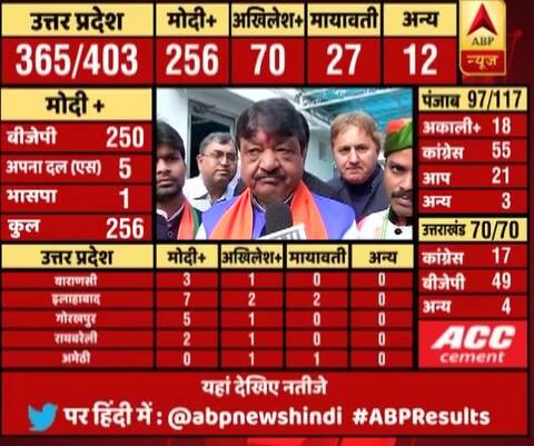 नई दिल्ली : यूपी समेत 5 राज्यों में गिनती जारी है. रुझानों के मुताबिक यूपी और उत्तराखंड में बीजेपी को बहुमत मिल चुका है. अगर यही ट्रेंड रहा तो राजनीतिक लिहाज से देश के सबसे बड़े राज्य में बीजेपी की सरकार बननी तय है. रुझानों के मुताबिक बीजेपी को मिल रही भारी जीत पर राजनीतिक बयान भी आने शुरु हो गए हैं. बीजेपी महासचिव कैलाश विजयवर्गीय ने कहा है कि ये टीम वर्क है, जनता का विश्वास है.