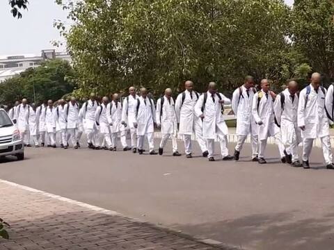 सैफई: सैफई विश्वविद्यालय की कुछ ऐसी तस्वीरें सामने आई हैं जिनको देख कर सभी लोग हैरान हैं. एमबीबीएस फर्स्ट ईयर के करीब 150 छात्रों का सर मुंडवा दिया गया है और उन्हें सीनियर छात्रों को झुक कर सलाम करना पड़ता है. यही नहीं सभी लोगों को हॉस्टल से लाइन में कॉलेज तक जाना होता है और इसी तरह वापस भी आना होता है.