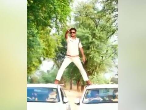 मामला दमोह जिले के नरसिंहगढ़ पुलिस चौकी के प्रभारी सब इंस्पेक्टर मनोज यादव का है. उनका एक वीडियो सोशल मीडिया पर वायरल हुआ है, जिसमें वह 2 कारों पर खड़े होकर फिल्म सिंघम के गीत पर स्टंट करते नजर आ रहे हैं.
