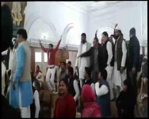 मेरठ: उत्तर प्रदेश के मेरठ में नगर निगम की पहली बोर्ड बैठक में वंदे मातरम को लेकर जमकर हंगामा हुआ. हंगामे के दौरान पार्षदों ने मेज पर चढ़कर नारेबाजी की. इस दौरान कई बाहरी लोग भी सदन के अंदर पहुंच गए. हालांकि पुलिस ने सदन में पहुंचकर बाहरी लोगों को बाहर निकाला.