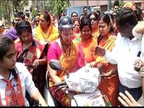 गोरखपुर: केंद्रीय मंत्री स्मृति ईरानी ने शुक्रवार को गोरखपुर में पार्टी उम्मीदवार रविकिशन के पक्ष में बाईक रैली निकाली. इस मौके पर उनके साथ बीजेपी महिला मोर्चा की नेता व कार्यकर्ता भी मौजूद रहे.