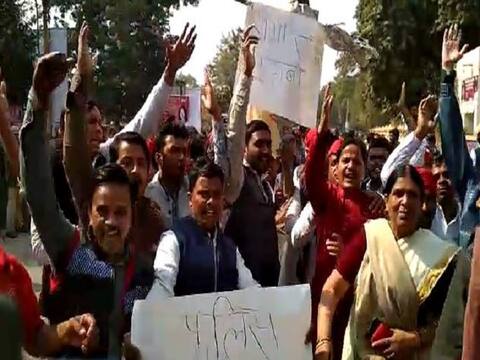 झांसी में भी कार्यकर्ताओं और नेताओं ने नारेबाजी करते हुए योगी सरकार का पुतला फूंका है.