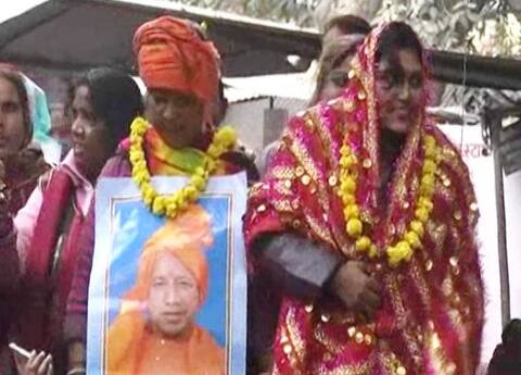 यूपी: युवती ने डीएम दफ्तर के बाहर सीएम योगी आदित्यनाथ से रचाई अनोखी 'शादी'