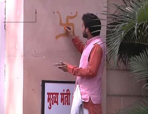 यूपी: सीएम निवास में आदित्यनाथ योगी के प्रवेश से पहले पूजा-पाठ, गोरखपुर के पंडित कर रहे हैं पूजा