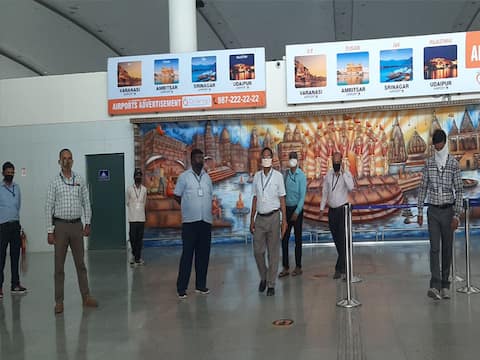 मास्क लगाना होगा अनिवार्य एयरपोर्ट टर्मिनल के अंदर यात्रियों के लिए सोशल डिस्टेंस की मार्किंग की गई है. यात्री मार्क पर होकर ही टर्मिनल के भीतर घूम सकते हैं. यात्रियों के बैठने के लिए भी सीटों पर मार्किंग की गई है और इसके साथ ही फाइनल चेकिंग के दौरान भी ऑटो हैंड सैनेटाइजिंग की व्यवस्था है. परिसर में मास्क लगाना अनिवार्य है.