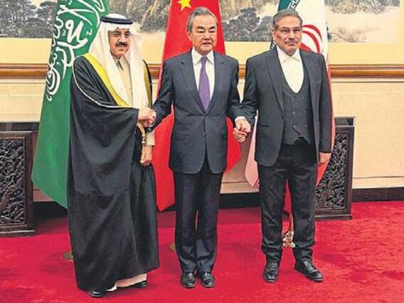 10 मार्च को एक हैरान करने वाली घटना हुई. इसमें ईरान और सऊदी अरब के राष्ट्रीय सुरक्षा सलाहकारों ने अपनी 7 साल की बेरुखी खत्म करने पर सहमति जताई. दोनों देशों के सलाहकारों ने ये सहमति बीजिंग में चीनी स्टेट काउंसिलर वांग यी की मौजूदगी में की. सुरक्षा सलाहकारों ने इस बात पर सहमति जताई कि दोनों देश अपने दूतावासों को दो महीने के अदंर खोल देंगे.