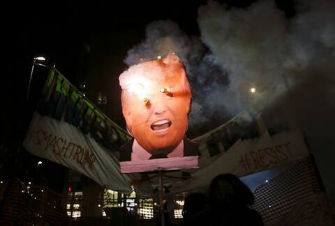 वॉशिंगटन: अमेरिका के अपने 45वें राष्ट्रपति के रूप में डोनाल्ड ट्रम्प का स्वागत करने के साथ ही पुलिस ने ट्रम्प के राष्ट्रपति पद के शपथ ग्रहण समारोह स्थल से कुछ ही दूरी पर ‘तोड़फोड़’ में शामिल करीब 100 विरोध प्रदर्शनकारियों को गिरफ्तार किया. अमेरिका मेंं ट्रम्प के राष्ट्रपति पद की शपथ लेने के अलावा छिटपुट हिंसा और पुलिस एवं प्रदर्शनकारियों के बीच हिंसा के भी नाम रहा. अपनी आवाज बुलंद करने के लिए यहां बड़ी संख्या में विरोध प्रदर्शनकारी जमा हुए थे और उन्होंने नये प्रशासन की कथित विभाजनकारी नीतियों के खिलाफ प्रदर्शन किए. वॉशिंगटन के मुख्य इलाके में नकाबपोश विरोध प्रदर्शनकारियों और पुलिस के बीच काफी हिंसा हुई. यह जगह नये राष्ट्रपति के सम्मान में आयोजित सैन्य परेड के रास्ते से थोड़ी ही दूरी पर है. इसे पहले नेशनल प्रेस क्लब के बाहर एक ट्रंप विरोधी प्रदर्शन का आयोजन किया गया जहां पुलिस ने लोगों को तितर-बितर करने के लिए पेपर स्प्रे का इस्तेमाल किया. पुलिस की ओर से मिर्ची स्प्रे का इस्तेमाल किये जाने के साथ कुछ प्रदर्शनकारियों ने भीड़ के बीच में टीयर गैस छोड़े. समाचार चैनल एनबीसी न्यूज के अनुसार प्रदर्शनकारियों ने एक इमारत की दीवार पर प्रोजेक्टर के माध्यम से दो संदेश दिखाया जिनमें से एक में कहा गया है कि ‘‘क्रूर राष्ट्रपति पर महाभियोग चलाया जाए.’’ एक प्रदर्शनकारी ने ट्रंप स्टाइल की टोपी जलाई. हजारों प्रदर्शनकारियों ने ट्रंप के विरोध में ‘यूएस कैपिटोल’ की ओर मार्च किया. देसबा रोजास नामक एक प्रदर्शनकारी ने कहा, ‘‘वे श्वेत नस्ली फासीवादी लोग हैं.’’ शपथ ग्रहण से पहले प्यू रिसर्च सेंटर ने अपने ताजा सर्वेक्षण में कहा कि अधिकतर लोग मानते हैं कि देश पूरी तरह बंट चुका है. सर्वेक्षण में शामिल 86 फीसदी लोगों ने कहा कि अतीत के मुकाबले आज का अमेरिका राजनीतिक रूप से अधिक बंट चुका है.