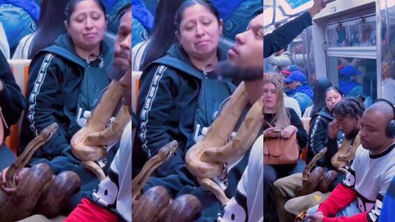 यह वायरल वीडियो न्यूयॉर्क में चलने वाली सबवे ट्रेन का है जहां पर एक व्यक्ति दो अजगर अपने गले में लटकाए मेट्रो ट्रेन में घुस आता है और सीट पर जाकर बैठ जाता है. मेट्रो में मौजूद कई लोग अजगर देखकर डर जाते हैं, लेकिन वह बिना डरे उन दोनों अजगर को हाथ में पकड़ कर बैठ जाता है. एक महिला को तो उस सांप से इतना डर लगा कि उसका चेहरा ही पीला पड़ गया. हालांकि, कुछ लोग उन सांपों के साथ कंफर्टेबल हो गए थे.