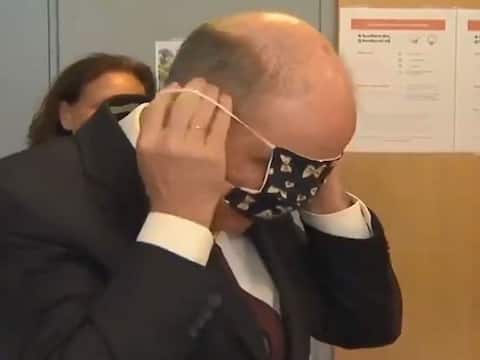 मास्क के अंदर फंसे बेल्जियम के मंत्री !