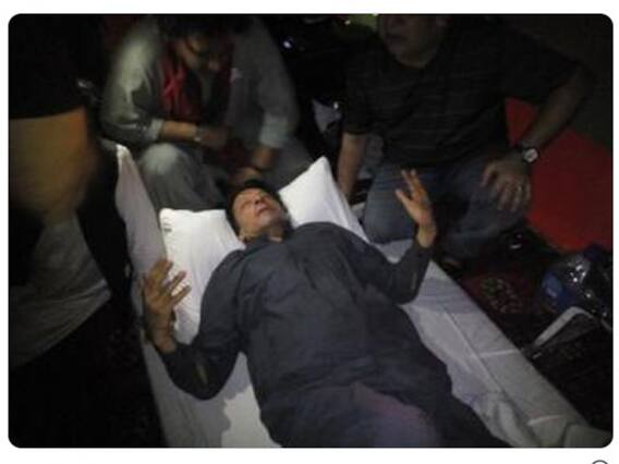 पीटीआई के अध्यक्ष इमरान खान की हत्या के प्रयास में घायल होने के बाद, एक स्ट्रेचर पर लेटे हुए उनकी एक तस्वीर सोशल मीडिया पर तेजी से वायरल हो रही है. इस तस्वीर में काले कपड़े में इमरान खान स्ट्रेचर पर लेटे हुए नजर आ रहे हैं, जिसे लेकर लोगों के मन में तरह-तरह के ख्याल आ रहे हैं. न्यूज एजेंसी डॉन डॉट कॉम (www.dawn.com) ने तस्वीर की हकीकत जानने की कोशिश की तो फैक्ट चेक में पाया कि पीटीआई नेता की यह वायरल तस्वीर साल 2014 की है.
