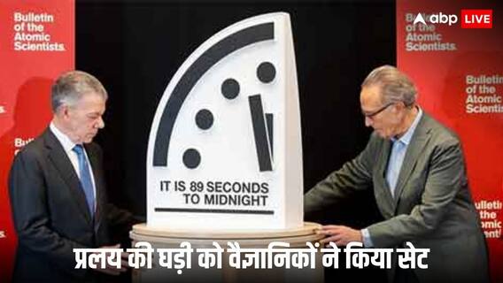 Scientists set the Doomsday Clock : परमाणु वैज्ञानिकों ने एक बार फिर से प्रलय की घड़ी को सेट किया है. मंगलवार (28 जनवरी) को परमाणु वैज्ञानिकों ने इस घड़ी को सेट करके आधी रात से 89 सेकेंड पहले कर दिया है. दरअसल, परमाणु वैज्ञानिकों 78 साल पहले एक अनोखी घड़ी बनाई थी, जिसे डूम्सडे क्लॉक (प्रलय की घड़ी) नाम दिया गया था. यह घड़ी इस बात का एक प्रतिकात्मक प्रयास था कि इंसान दुनिया को नष्ट करने के कितने नजदीक है,