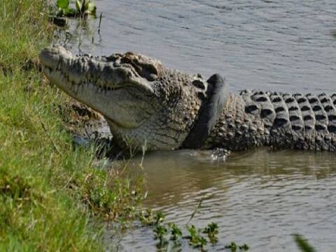पालू: इंडोनेशिया सरकार ने एक मगरमच्छ के गले में फंसे मोटरबाइक के टायर को निकालने के लिए कैश प्राइस देने की घोषणा की थी. जिसे अब रद्द कर दिया गया है. बता दें कि इंडोनेशिया के पालू में पिछले कुछ सालों से एक 13 फीट मगरमच्छ के गले में टायर फंसा हुआ है.