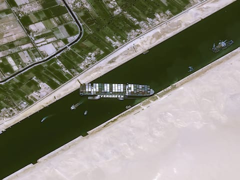 जहाज के फंसने से बनी है ट्रैफिक जाम की स्थिति