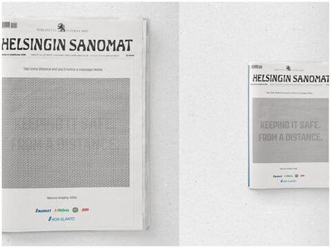 सोशल डिस्टेंसिंग की सलाह के बीच फिनलैंड में एक समाचार पत्र की अनूठी पहल सामने आई है. उसने लोगों को जागरुक करने के लिए बिल्कुल अलग तरीका अपनाया है. समाचार पत्र ने अपने पूरे पेज पर सोशल डिस्टेंसिंग का विज्ञापन प्रकाशित कर लोगों का ध्यान खींचा है.