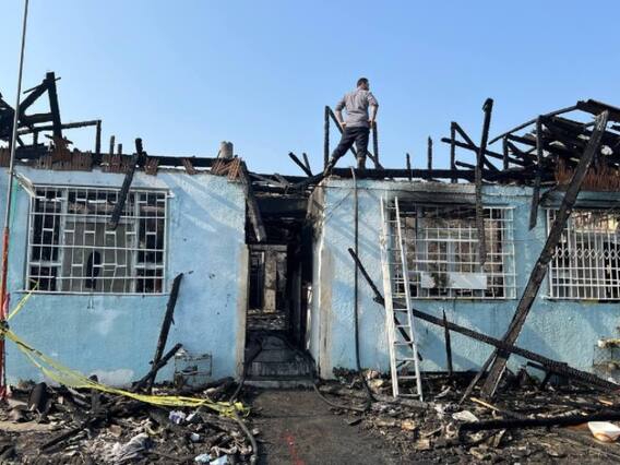 अन्य फुटेज में आपातकालीन कर्मियों, अग्निशामकों और एम्बुलेंस को आग पर काबू पाने के बाद घटना स्थल पर इकट्ठा होते हुए दिखाया गया है, तस्वीरों में दिखाया गया है कि केंद्र की छत नष्ट हो गई है, इसकी खिड़कियां टूट गई हैं और इसकी दीवारें धुएं से काली हो गई हैं.