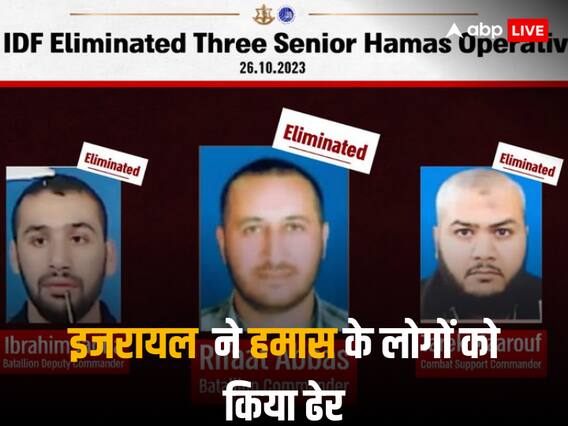 इजरायली एयरफोर्स ने कहा कि इजरायल सुरक्षा एजेंसी शिन बेट के सटीक खुफिया मार्गदर्शन के तहत हमास के लड़ाकों को मार गिराया गया है. IDF ने शिन बेट और अम्मान के सटीक खुफिया मार्गदर्शन के तहत चरमपंथी संगठन हमास के दराज तफा बटालियन के कमांडर रफत अब्बास, उनके डिप्टी कमांडर इब्राहिम जेदेवा और युद्ध और प्रशासनिक सहायता के कमांडर तारेक को मार गिराया.
