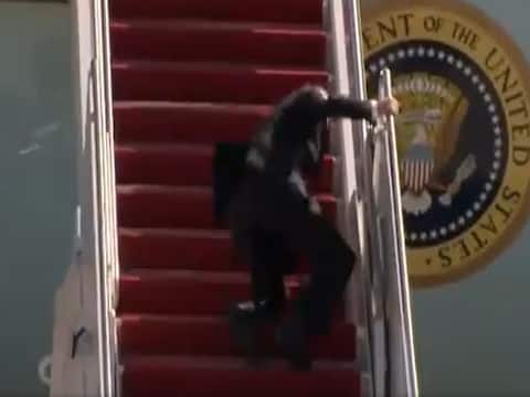बाइडेन एटलांटा जाने के लिए ज्वाइंस बेस एंड्रयूज से उड़ान भरने के लिए फ्लाइट में सवार हो रहे थे. जैसे ही वह पहली बार गिरे फिर तेजी के साथ उठे फिर दूसरी बार उनका संतुलन खो गया और फिर तीसरी बार भी. तीसरी बार वह घुटनों के बल गिर पड़े.
