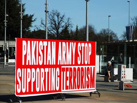 नई दिल्ली: संयुक्त राष्ट्र मानवाधिकार काउंसिल मुख्यालय के बाहर पाकिस्तान आर्मी स्टॉप स्पोर्टिंग टेररिज्म के पोस्टर लगे दिखाई दिए जहां 43वां सेशन चल रहा है. लाल रंग के पोस्टरों पर सफेद रंग से ये बात लिखी गई है और इसे पाकिस्तानी आर्मी के विरोध के रूप में देखा जा रहा है.