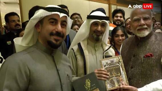 PM Narendra Modi Kuwait Visit: प्रधानमंत्री नरेंद्र मोदी शनिवार (21 दिसंबर) को दो दिवसीय यात्रा पर कुवैत पहुंचे हैं, उनका गर्मजोशी से स्वागत किया गया. इस दौरान उन्हें अरबी भाषा की रामायण और महाभारत भी भेंट की गई. प्रधानमंत्री ने कुवैत में अब्दुल्ला अल बरून और अब्दुल लतीफ अल नेसेफ से मुलाकात की. पीएम मोदी ने दोनों की सराहना की और उनकी पुस्तक पर हस्ताक्षर किए. पीएम मोदी ने कहा कि उनके प्रयासों के लिए बधाई देता हूं. उनकी पहल वैश्विक स्तर पर भारतीय संस्कृति की लोकप्रियता को बताती है.