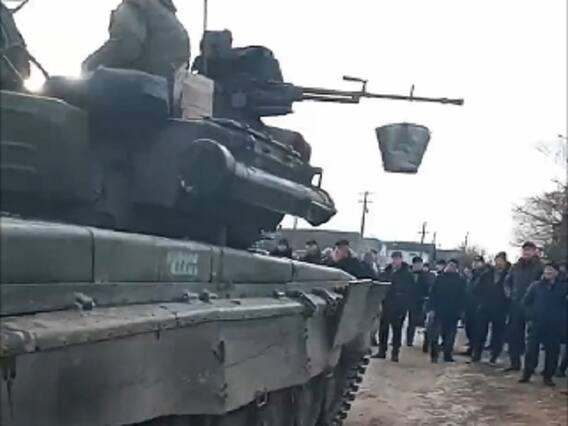 रूस की सेना लगातार यूक्रेन की राजधानी कीव में घुसने की कोशिश कर रही है. यूक्रेन के कई शहरों में बमबारी और हवाई हमले हो रहे हैं. इस दौरान एक वीडियो सामने आया है, जिसमें देखा जा रहा है कि यूक्रेन के नागरिक रूस के टैंकों का रास्ता रोक रहे हैं. लोग रूस के टैंकों के आगे खड़े हो गए. एक शख्स ने तो हाथ से टैंक को रोकने की कोशिश तक की.