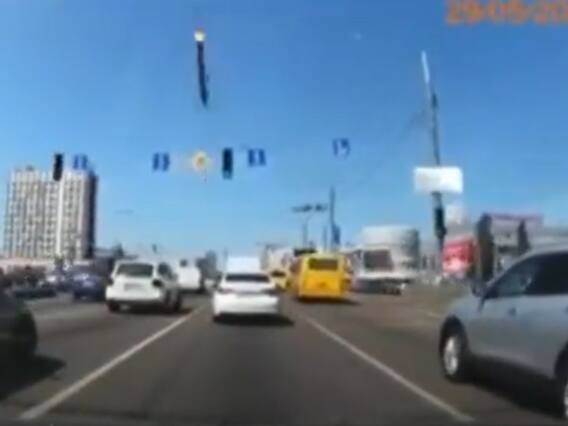 यूक्रेन की राजधानी कीव में सोमवार (29 मई) को बैलिस्टिक मिसाइल एक चलती कार के पास गिरी. कार के अंदर बैठे दोनों कार सवार की किस्मत अच्छी रही कि वो बाल-बाल बच गए. रूसी बैलिस्टिक मिसाइल कार से बस कुछ इंच दूर गिरी थी. ये घटना रात में ड्रोन हमले के बाद हुई.