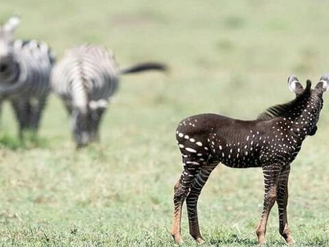 इस ज़ेब्रा का रंग काला है और इसके शरीर पर छोटे-छोटे सफेद रंग के पोल्का डोट्स हैं. दरअसल ऐसा इसलिए है क्योंकि यह जेब्रा गंभीर रूप से बीमार है और इसके शरीर पर सफेद चकत्ते हो गए हैं.