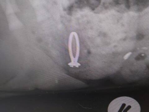 नई दिल्ली: साउथ अफ्रीका से एक बेहद दिलचस्प मामला सामने आया है जहां एक कुत्ता अपने मालिक की इंगेजमेंट रिंग निगल गया. पैपर नाम के इस कुत्ते को वैली फार्म एनिमल अस्पताल में भर्ती कराया गया है. अस्पताल ने इस कुत्ते की तस्वीर के साथ एक्सरे भी सोशल मीडिया पर शेयर किया है जिसमें इंगेजमेंट रिंग भी दिखाई दे रही है.