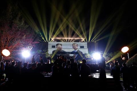 समाचार एजेंसी एफे के अनुसार, दोनों नेताओं के मुलाकात की जगह पनमुनजोम से नौ किलोमीटर दूर इमजिंगाक पार्क में करीब 25 लोग इक्ट्ठा हुए और उत्तर कोरिया के परमाणु हथियार कार्यक्रम की आलोचना वाले पोस्टर लहराए.